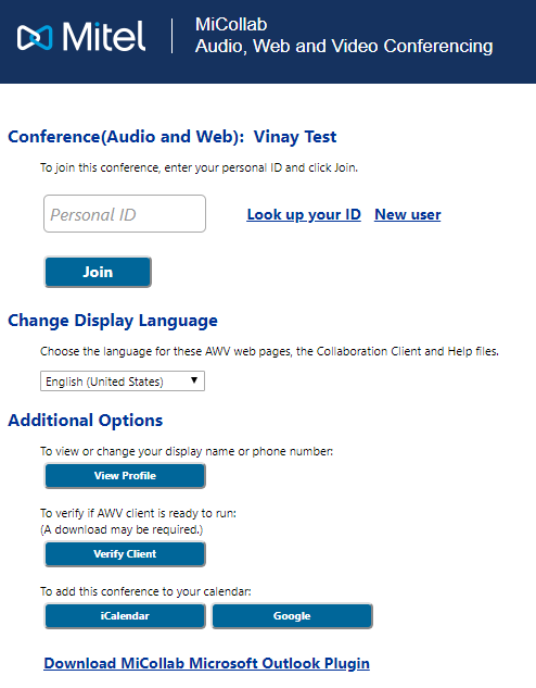 Join via Windows Client: To join using the MiCollab Audio, Web and Video Conferencing Desktop Client.