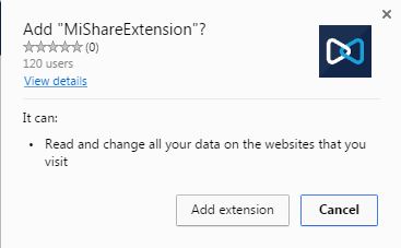 Hover your mouse over the Share icon and click the Install Extension option. MiShareExtension displays in a new tab.