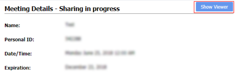 When you share from Web Client, the viewer region is hidden and Sharing In Progress is displayed in the meeting details title.